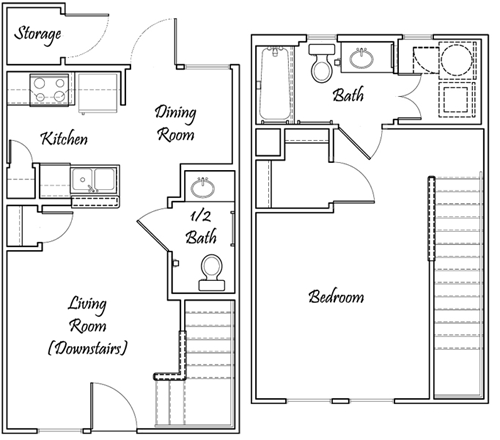 One Bedroom / One and 1/2 Bath - Townhome Bi-Level - 710 Sq. Ft.*
