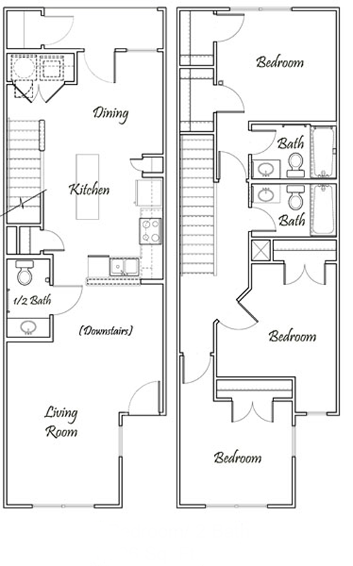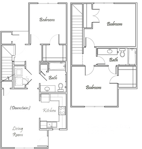 Two Bedroom / One and 1/2 Bath - Townhome Bi-Level - 1,073 Sq. Ft.*